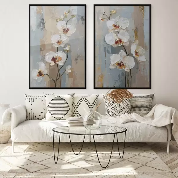 Poster Flores de orquídea blanca al estilo de la pintura al óleo. Nr d01175