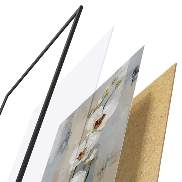 El póster consta de marco, plexiglás, imagen impresa y soporte de aglomerado. El póster puede colgarse inmediatamente en la pared gracias a los soportes de la parte posterior.