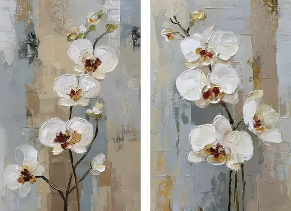 Poster Flores de orquídea blanca al estilo de la pintura al óleo. Nr d01175