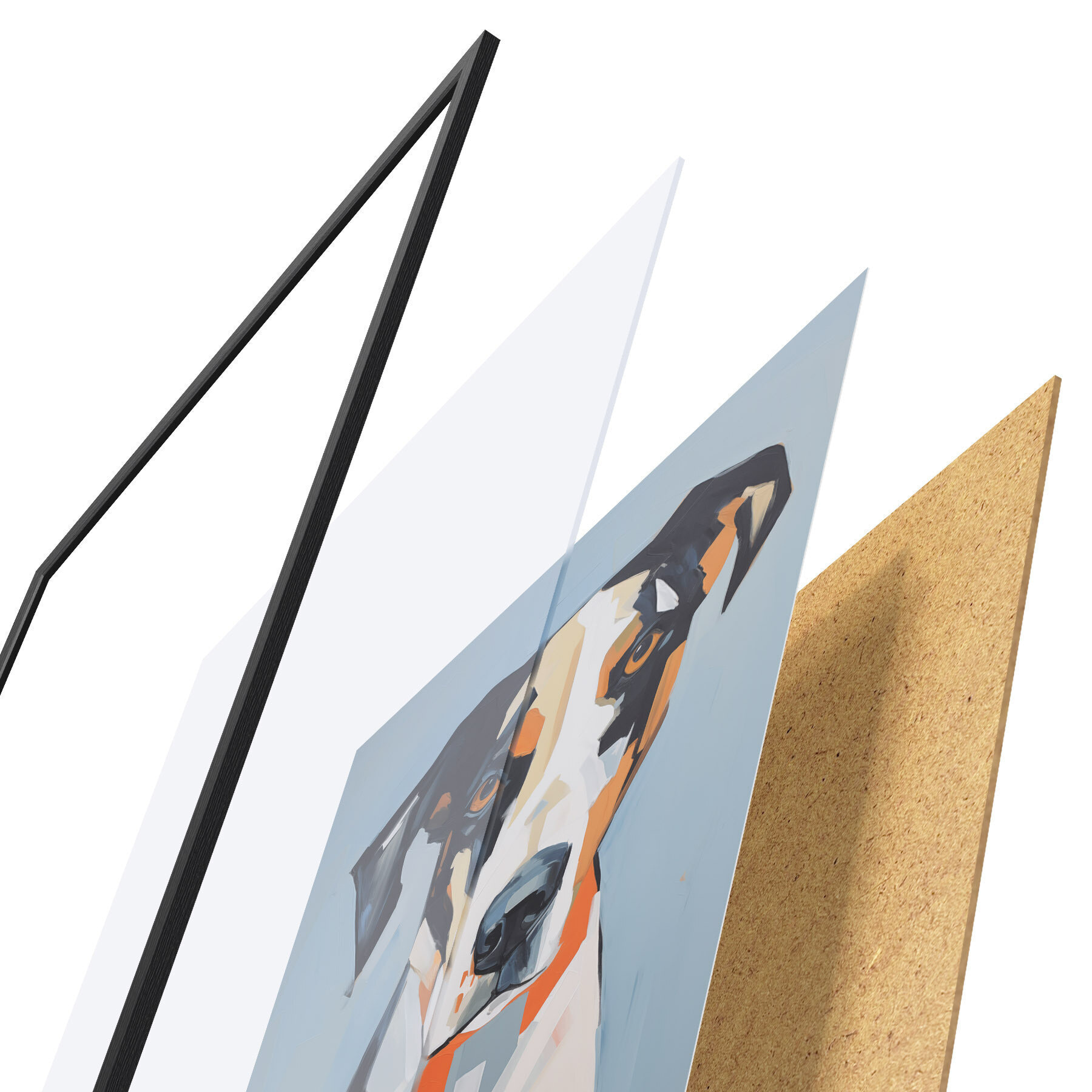 El póster consta de marco, plexiglás, imagen impresa y soporte de aglomerado. El póster puede colgarse inmediatamente en la pared gracias a los soportes de la parte posterior.