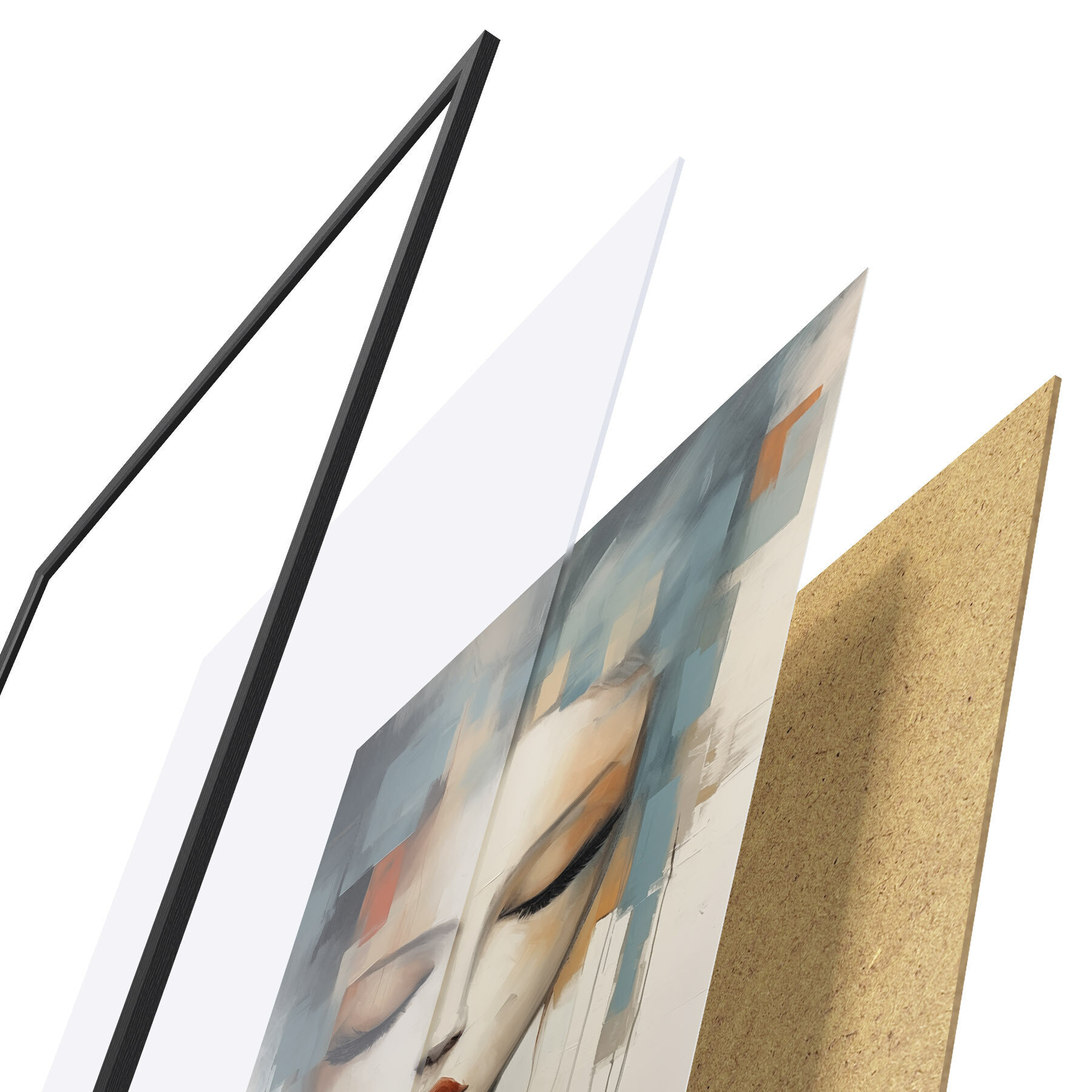 El póster consta de marco, plexiglás, imagen impresa y soporte de aglomerado. El póster puede colgarse inmediatamente en la pared gracias a los soportes de la parte posterior.