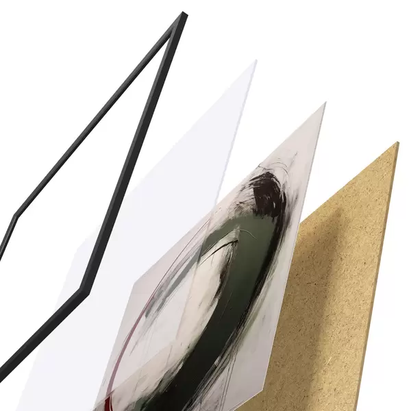 El póster consta de marco, plexiglás, imagen impresa y soporte de aglomerado. El póster puede colgarse inmediatamente en la pared gracias a los soportes de la parte posterior.