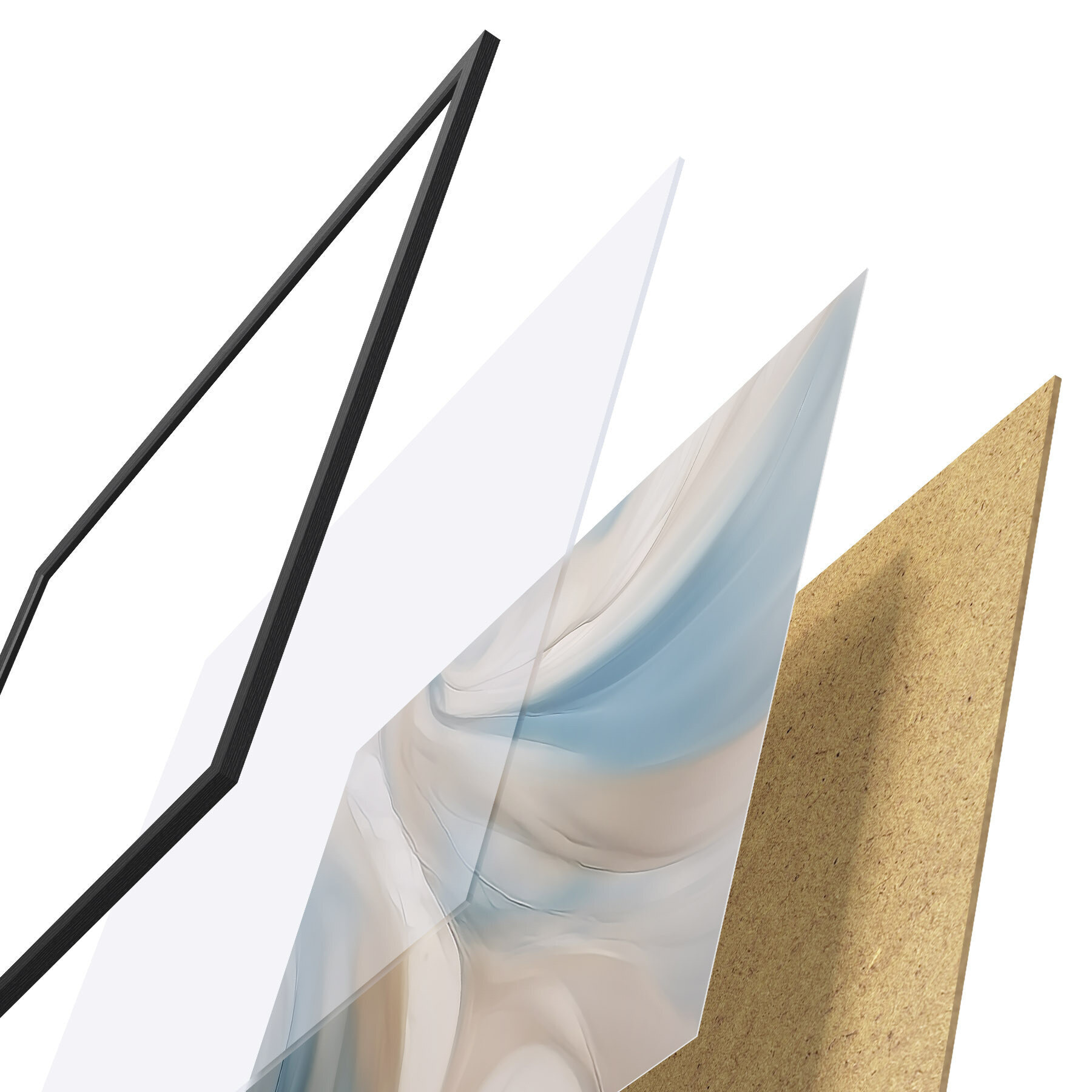 El póster consta de marco, plexiglás, imagen impresa y soporte de aglomerado. El póster puede colgarse inmediatamente en la pared gracias a los soportes de la parte posterior.