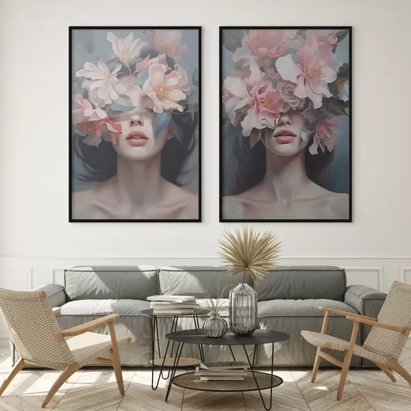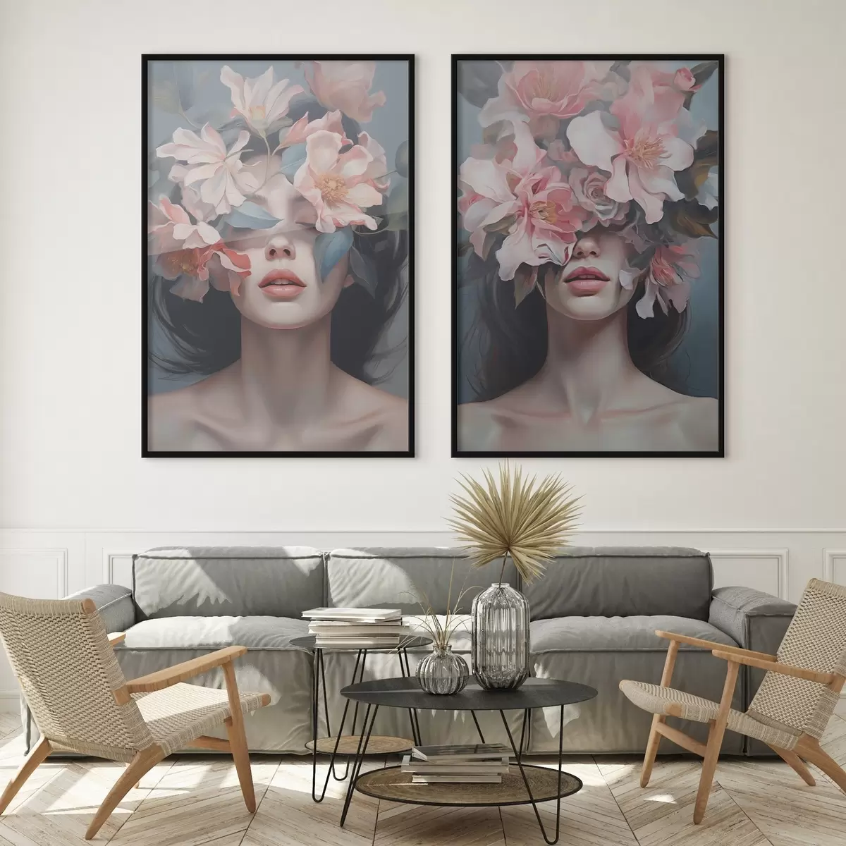 Poster Retrato abstracto de mujer con flores Nr d01221