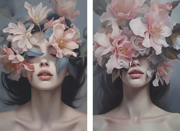 Poster Retrato abstracto de mujer con flores Nr d01221