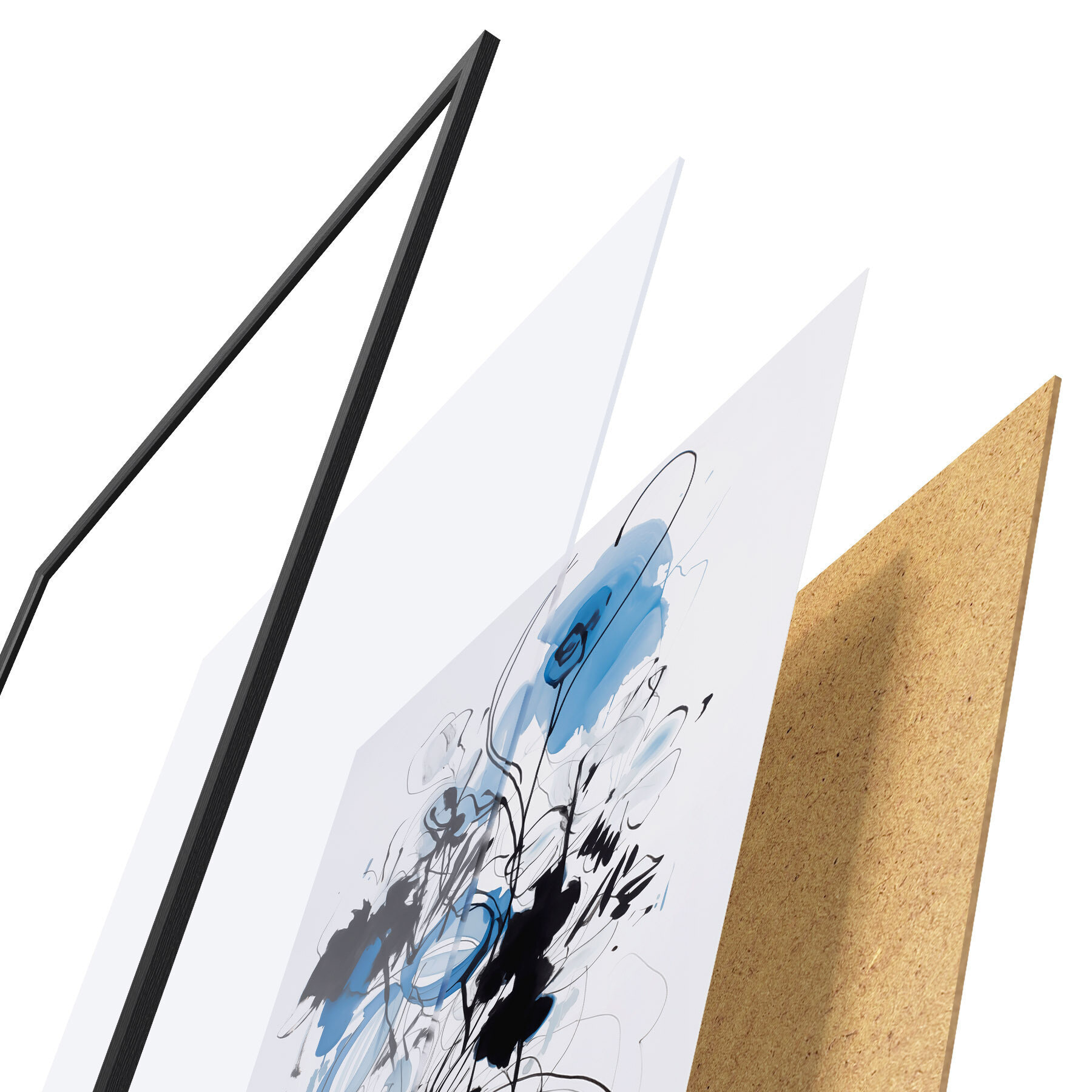 El póster consta de marco, plexiglás, imagen impresa y soporte de aglomerado. El póster puede colgarse inmediatamente en la pared gracias a los soportes de la parte posterior.