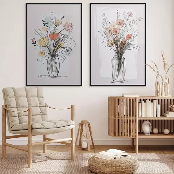 Poster Flores en un jarrón imitación de un dibujo d01224