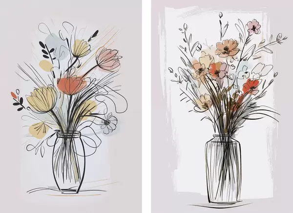 Poster Flores en un jarrón imitación de un dibujo Nr d01224