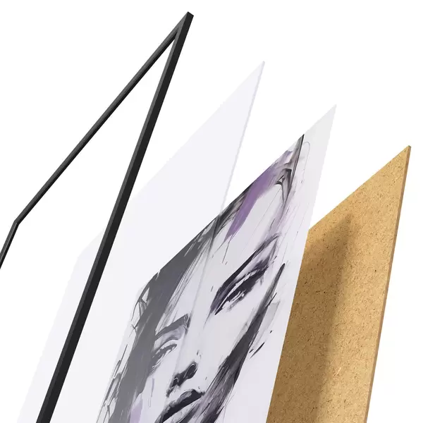 El póster consta de marco, plexiglás, imagen impresa y soporte de aglomerado. El póster puede colgarse inmediatamente en la pared gracias a los soportes de la parte posterior.
