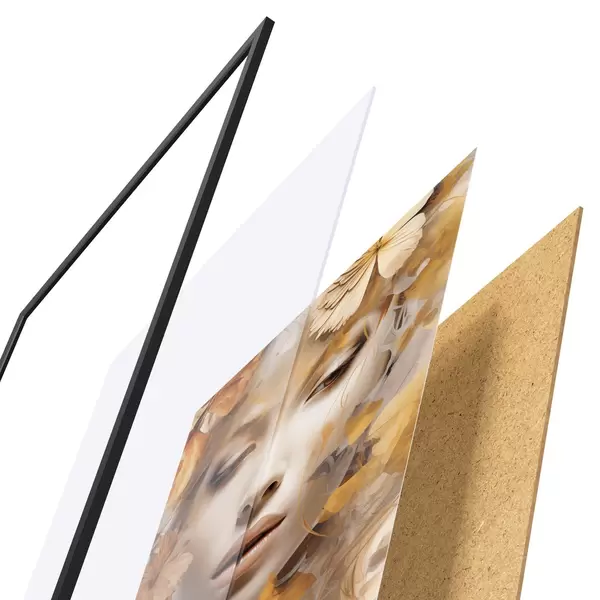 El póster consta de marco, plexiglás, imagen impresa y soporte de aglomerado. El póster puede colgarse inmediatamente en la pared gracias a los soportes de la parte posterior.