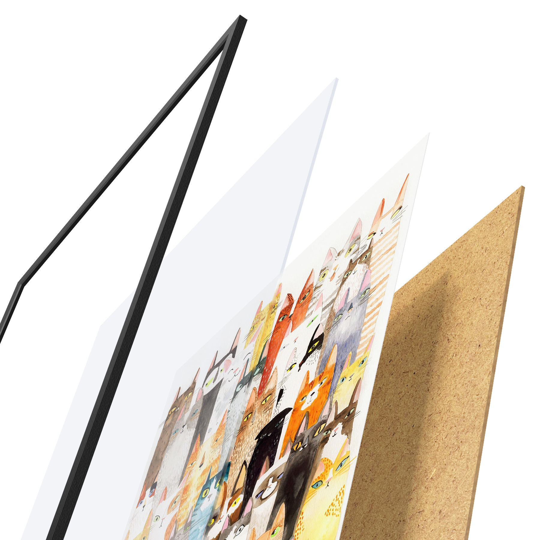 El póster consta de marco, plexiglás, imagen impresa y soporte de aglomerado. El póster puede colgarse inmediatamente en la pared gracias a los soportes de la parte posterior.