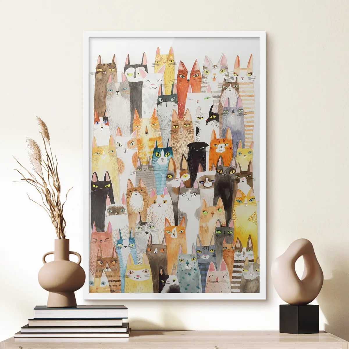 Poster Una colorida reunión de gatos curiosos Nr f01036