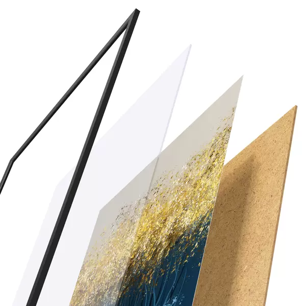 El póster consta de marco, plexiglás, imagen impresa y soporte de aglomerado. El póster puede colgarse inmediatamente en la pared gracias a los soportes de la parte posterior.