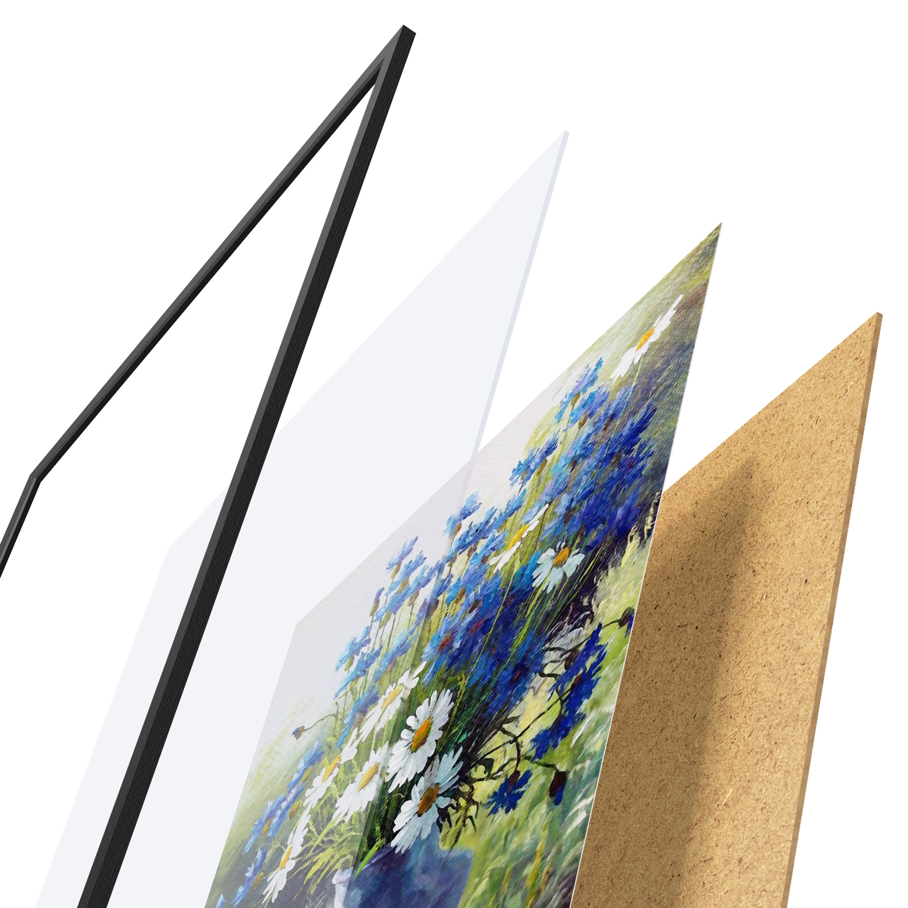 El póster consta de marco, plexiglás, imagen impresa y soporte de aglomerado. El póster puede colgarse inmediatamente en la pared gracias a los soportes de la parte posterior.