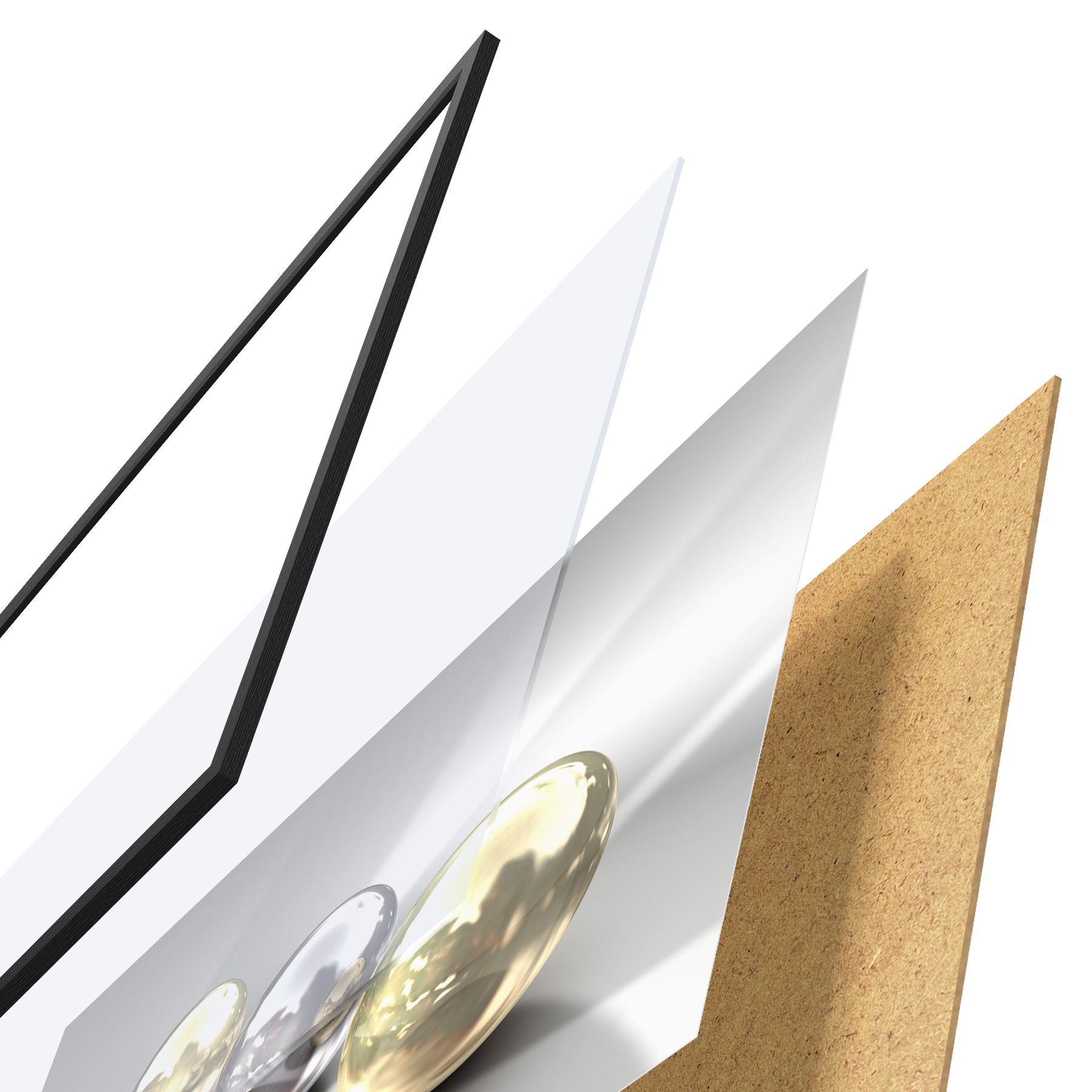 El póster consta de marco, plexiglás, imagen impresa y soporte de aglomerado. El póster puede colgarse inmediatamente en la pared gracias a los soportes de la parte posterior.