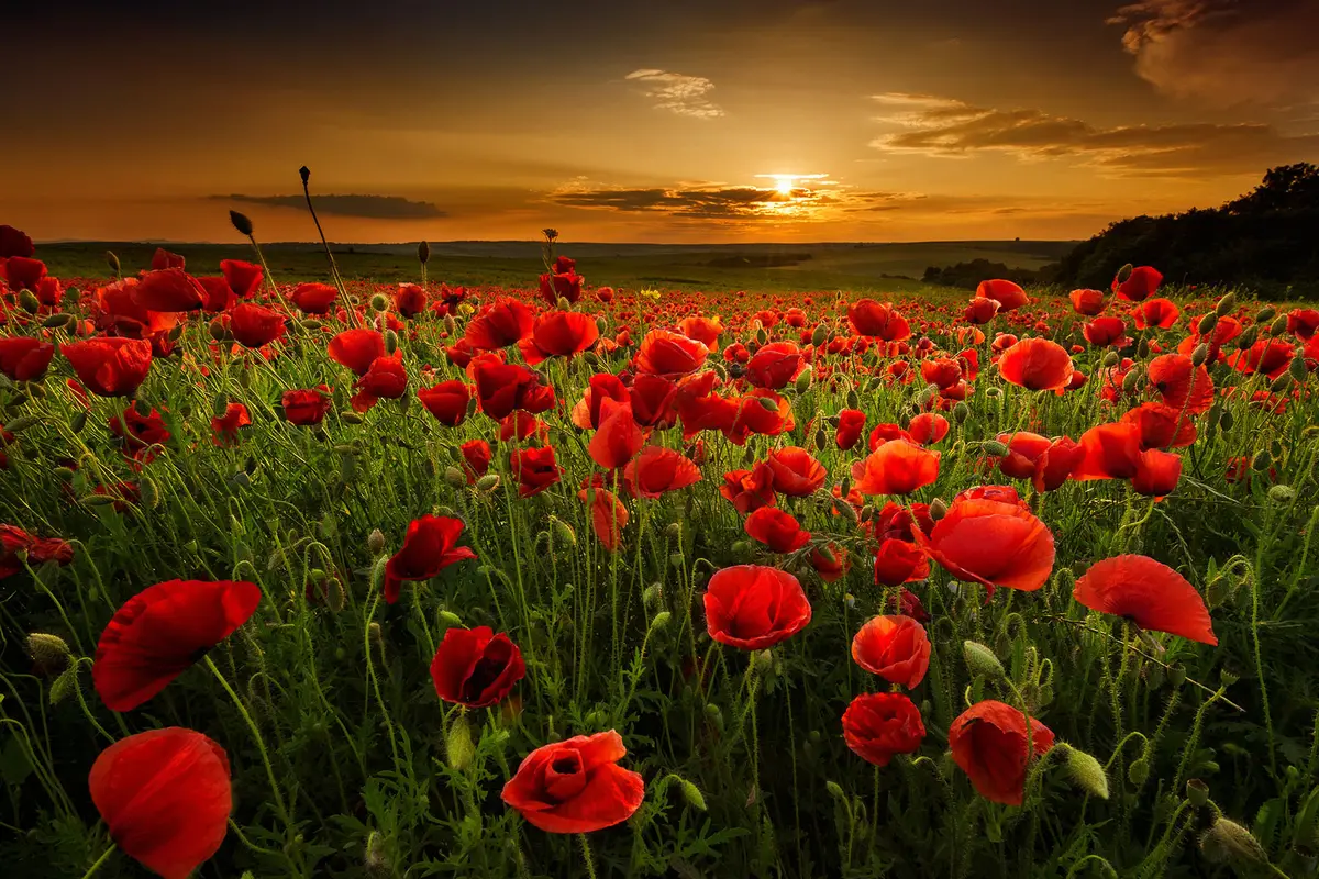 Poster Vibrante campo de amapolas al atardecer Nr f05477