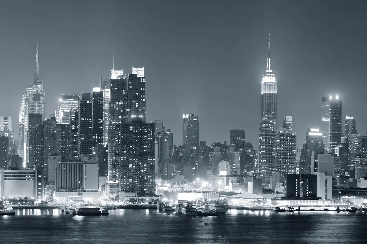 Poster El horizonte de la ciudad iluminado por la noche f10201