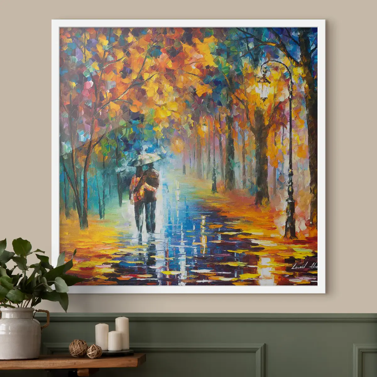 El barnizado crea una capa protectora adicional sobre el lienzo. El cuadro será más resistente a pequeños daños, y para refrescar el cuadro barnizado, puedes limpiarlo con un paño suave ligeramente humedecido.