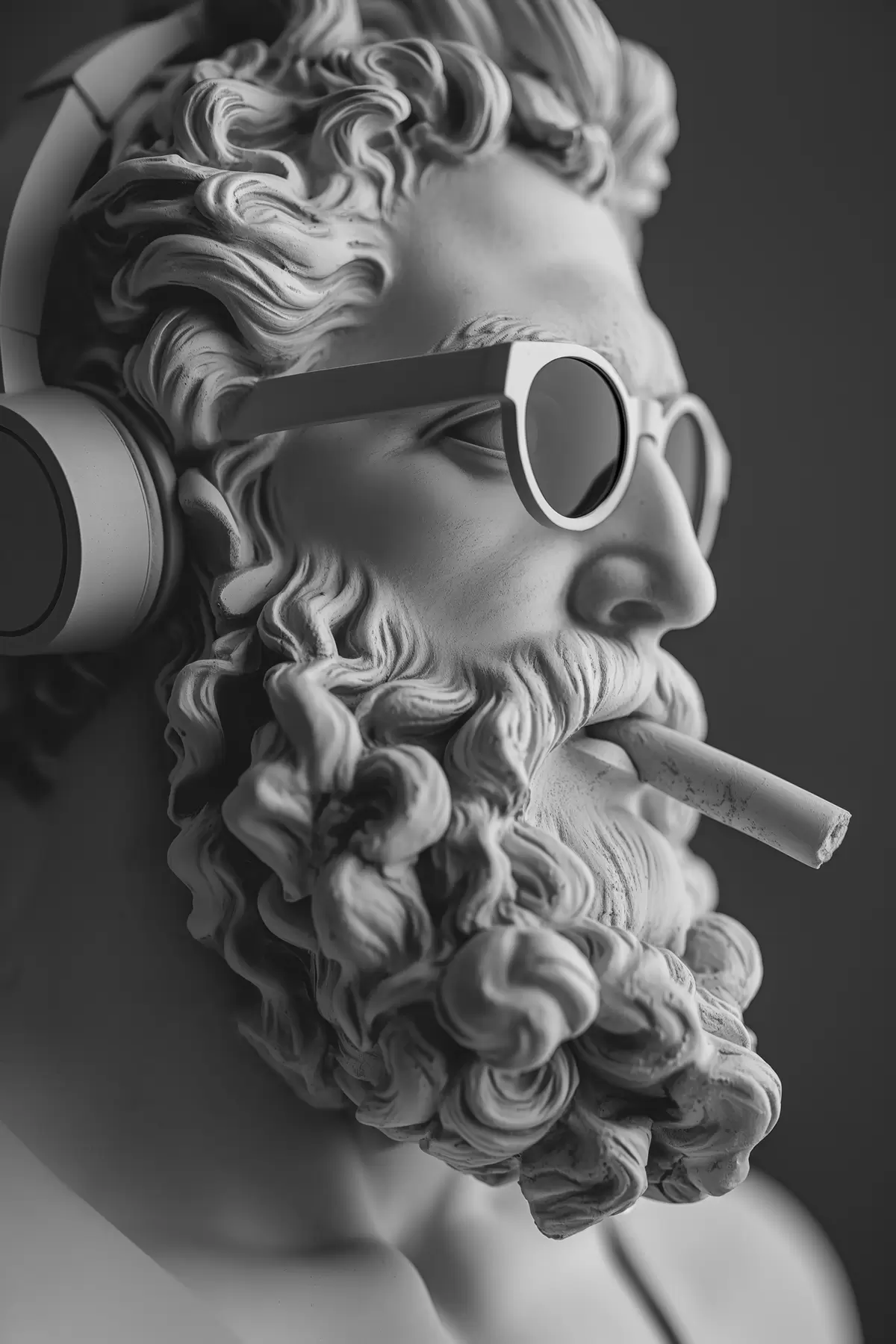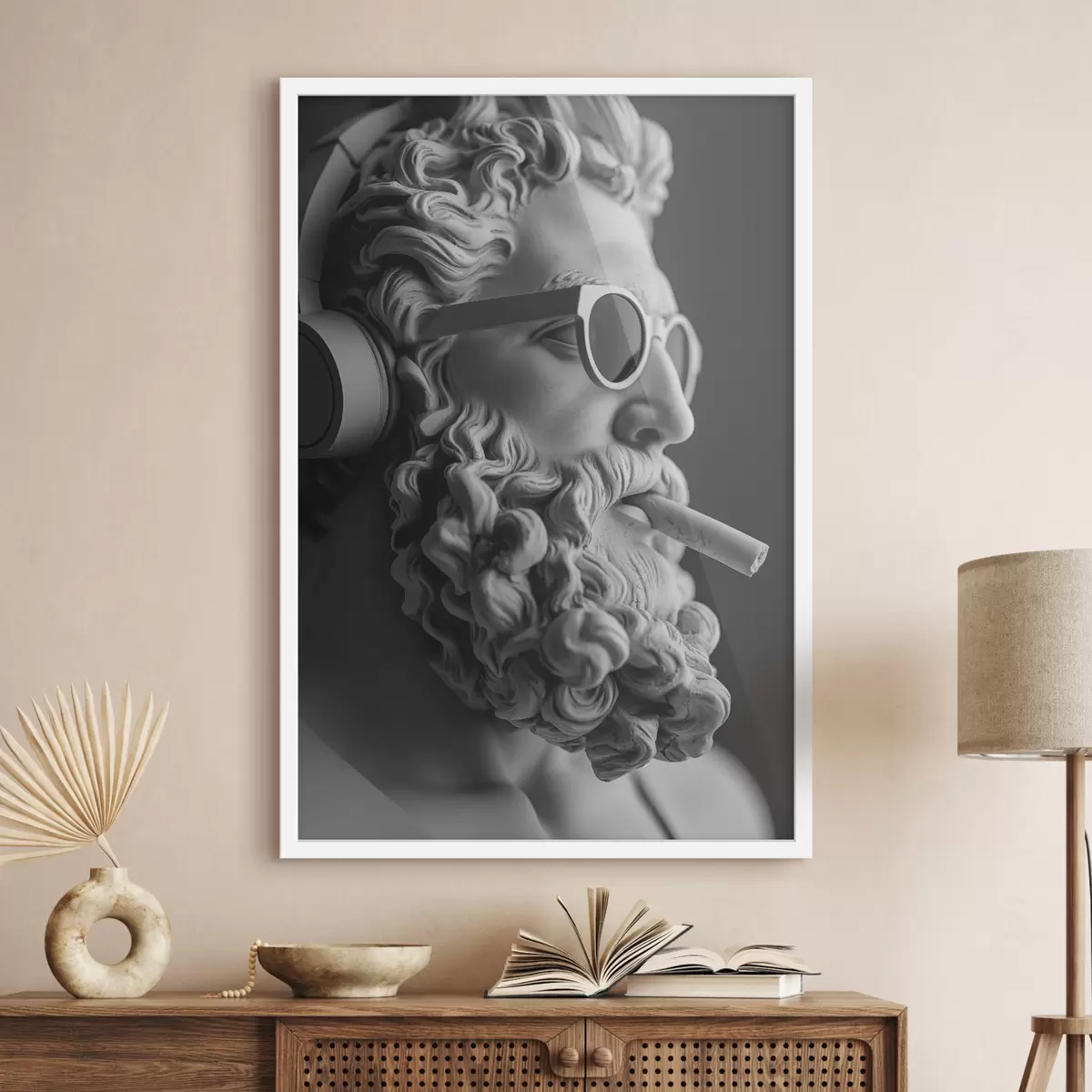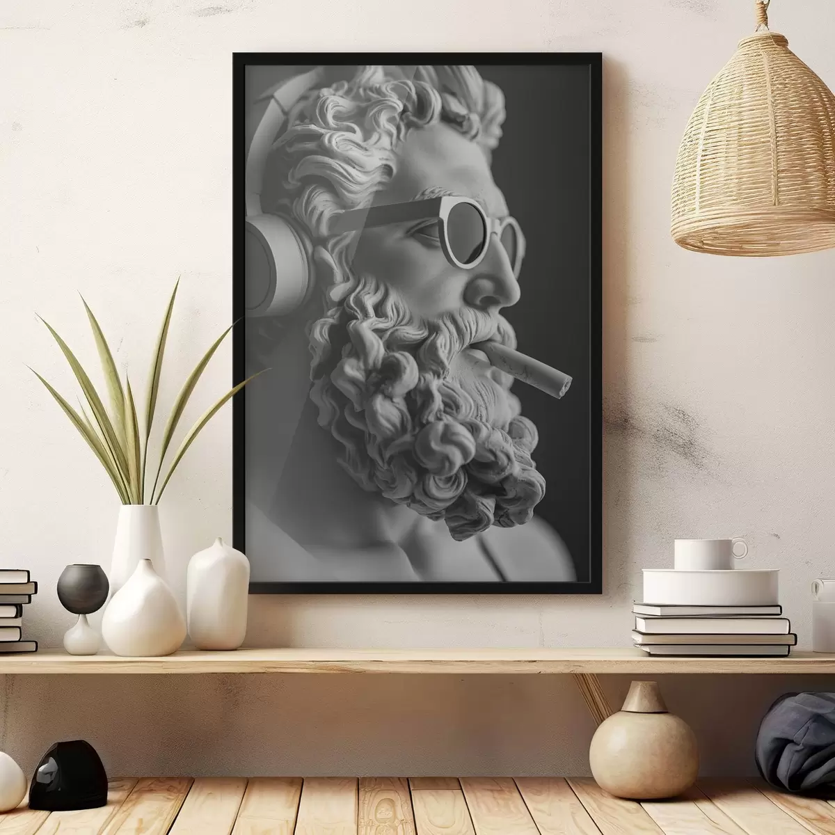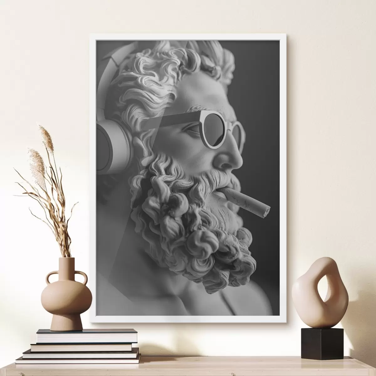 Poster escultura griega antigua en blanco y negro de Zeus en estilo moderno Nr f26122
