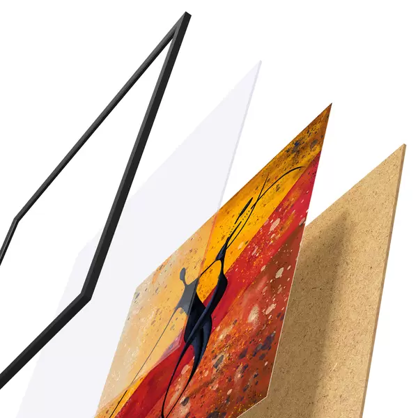 El póster consta de marco, plexiglás, imagen impresa y soporte de aglomerado. El póster puede colgarse inmediatamente en la pared gracias a los soportes de la parte posterior.
