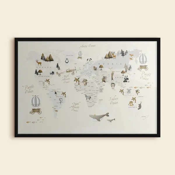 Poster Mapa del mundo caprichoso con animales Nr f31798