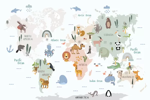 Poster Ilustración caprichosa del mapa mundial de animales Nr f32082