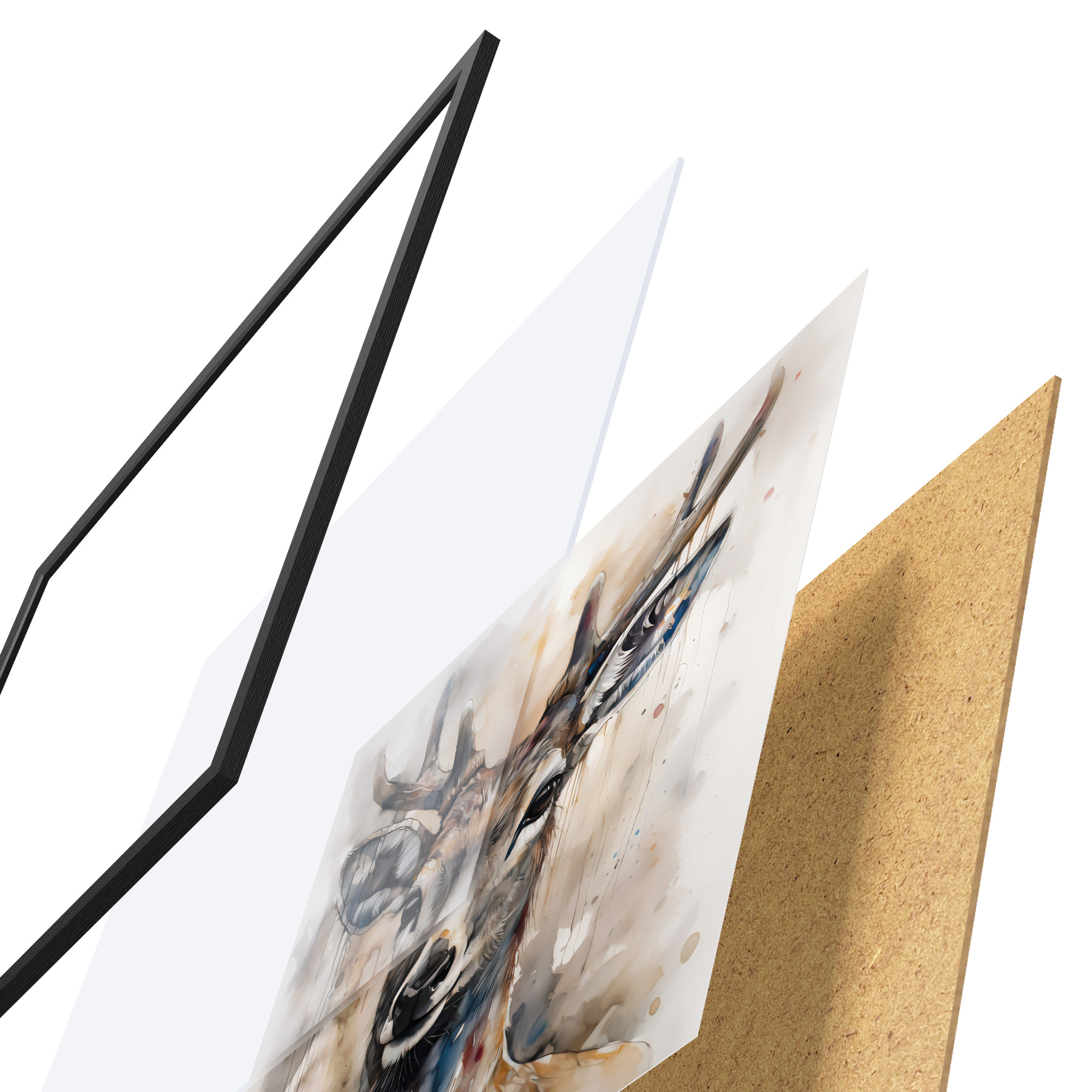 El póster consta de marco, plexiglás, imagen impresa y soporte de aglomerado. El póster puede colgarse inmediatamente en la pared gracias a los soportes de la parte posterior.