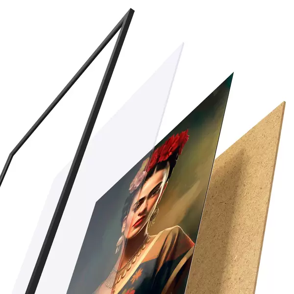 El póster consta de marco, plexiglás, imagen impresa y soporte de aglomerado. El póster puede colgarse inmediatamente en la pared gracias a los soportes de la parte posterior.