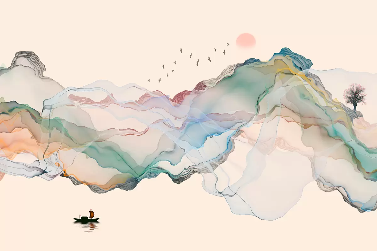 Poster Sereno viaje a través de coloridos paisajes f32936