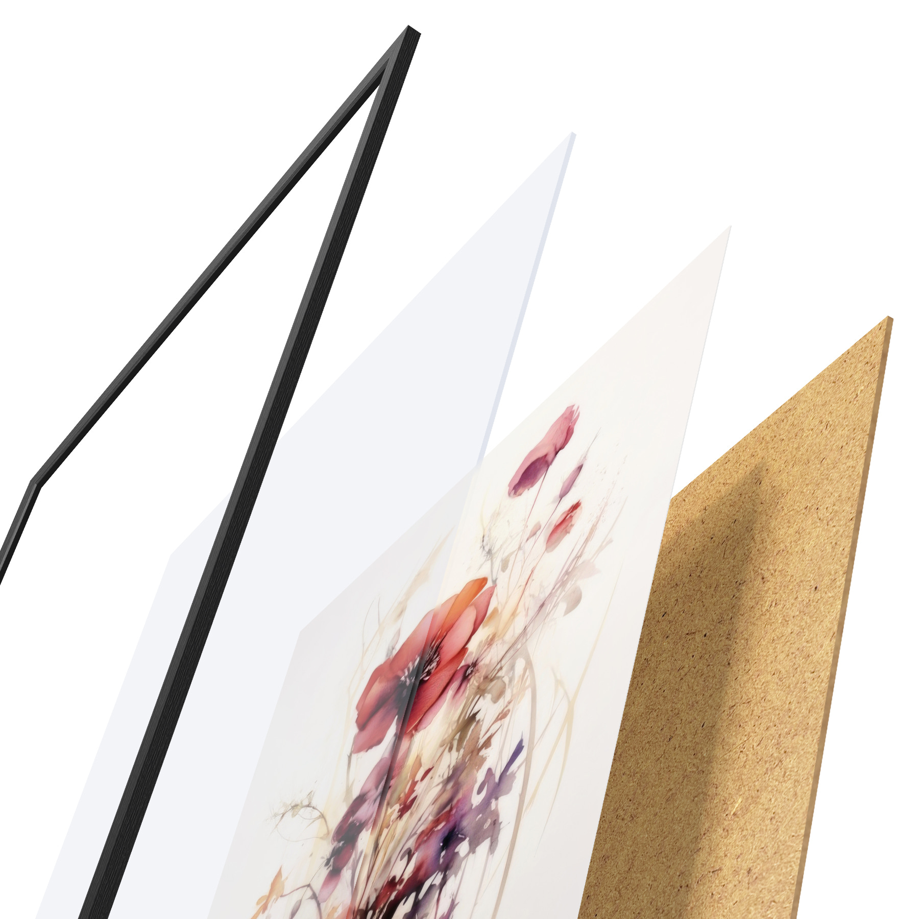 El póster consta de marco, plexiglás, imagen impresa y soporte de aglomerado. El póster puede colgarse inmediatamente en la pared gracias a los soportes de la parte posterior.