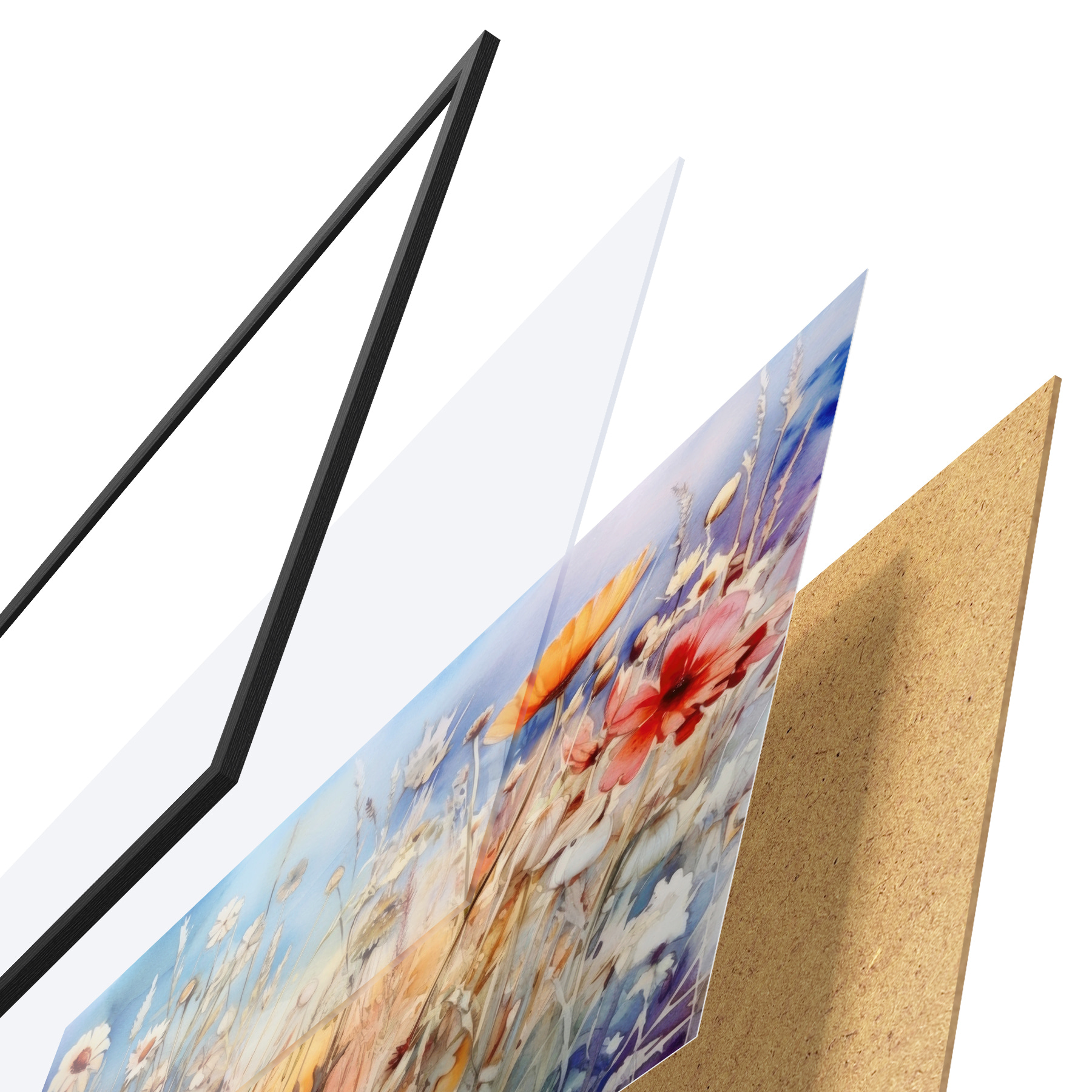 El póster consta de marco, plexiglás, imagen impresa y soporte de aglomerado. El póster puede colgarse inmediatamente en la pared gracias a los soportes de la parte posterior.