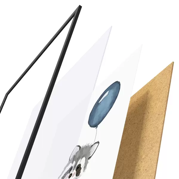 El póster consta de marco, plexiglás, imagen impresa y soporte de aglomerado. El póster puede colgarse inmediatamente en la pared gracias a los soportes de la parte posterior.