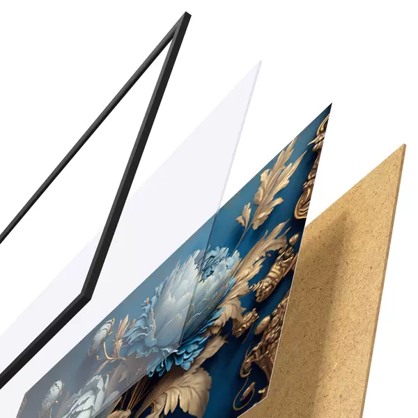 El póster consta de marco, plexiglás, imagen impresa y soporte de aglomerado. El póster puede colgarse inmediatamente en la pared gracias a los soportes de la parte posterior.