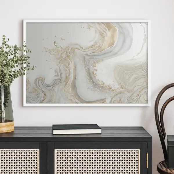 El póster consta de marco, plexiglás, imagen impresa y soporte de aglomerado. El póster puede colgarse inmediatamente en la pared gracias a los soportes de la parte posterior.