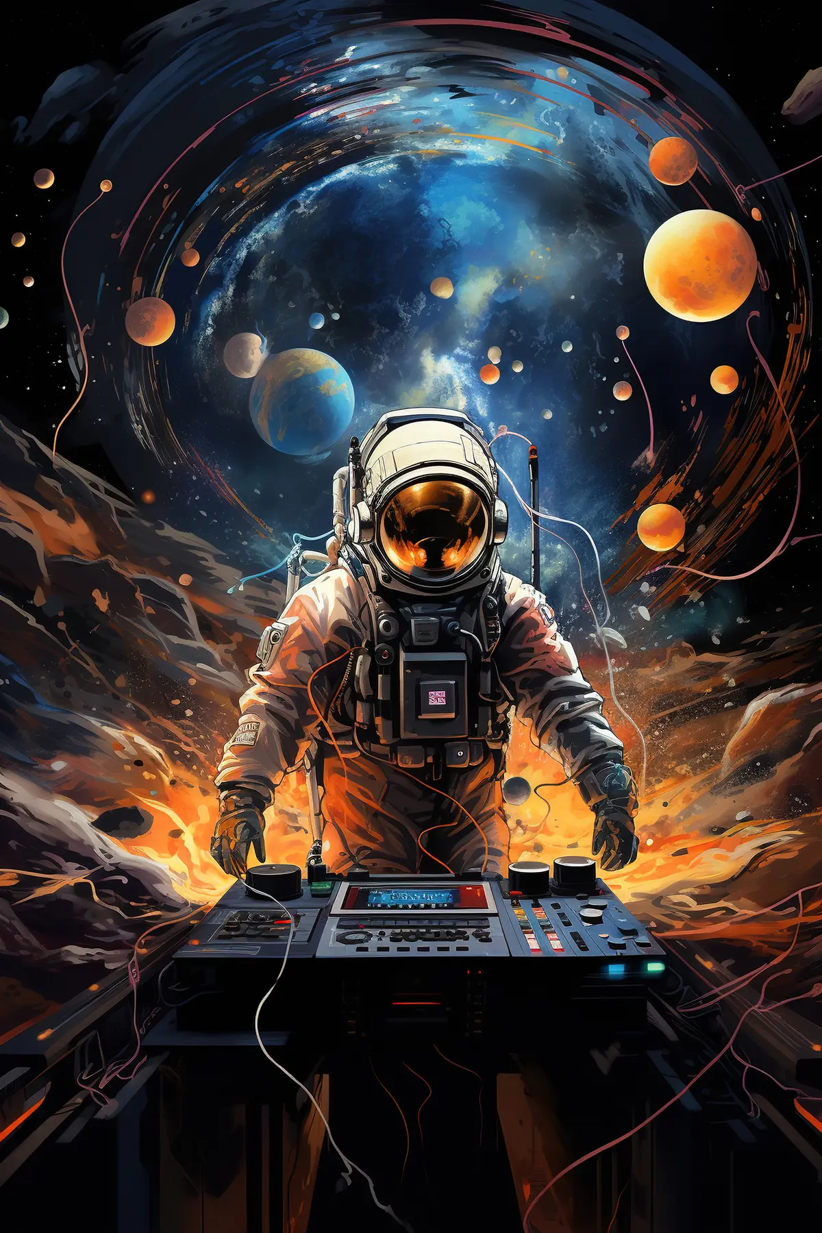 Poster Un astronauta navega por las ondas sonoras cósmicas f34216