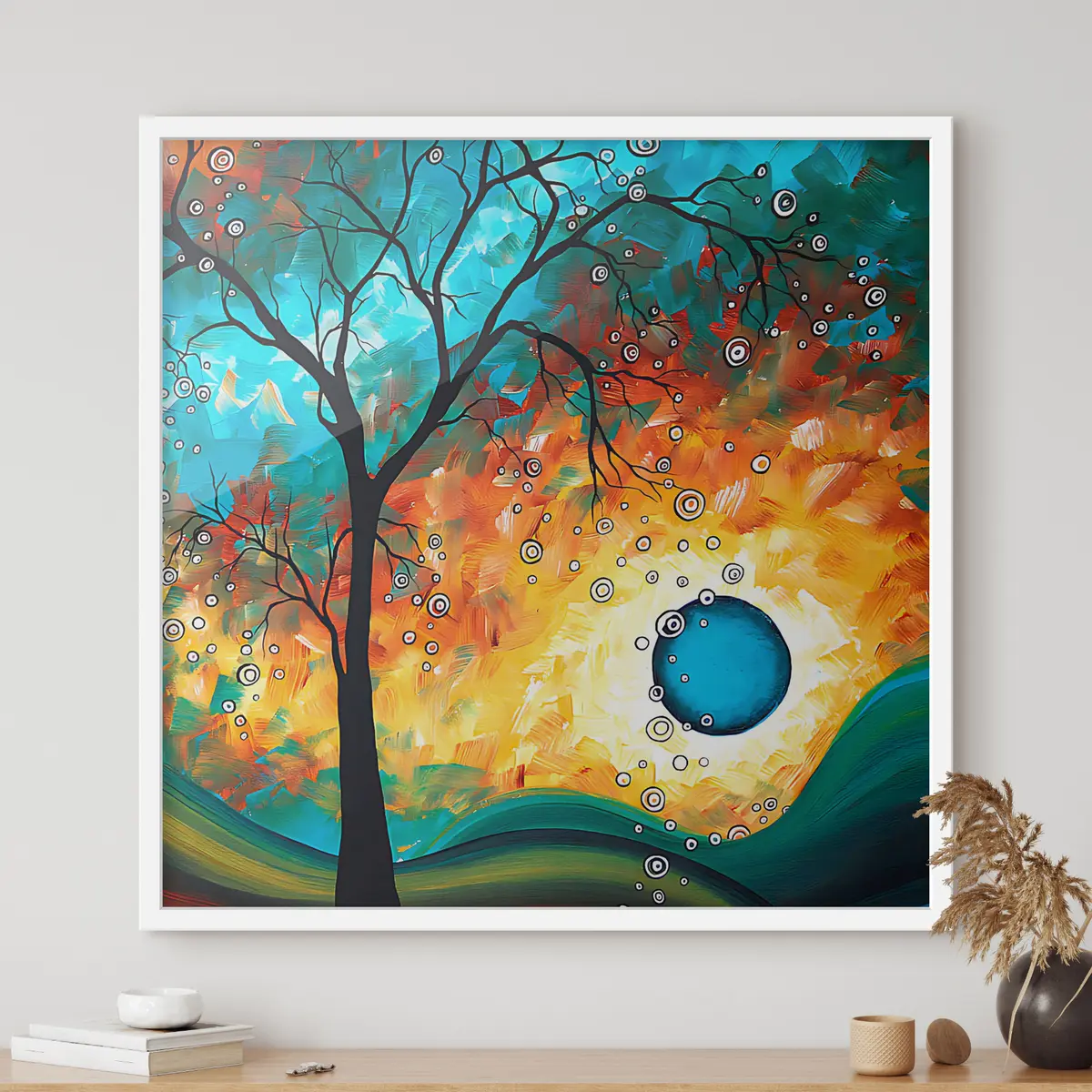 Vendemos cuadros en bastidor: se trata de un marco de madera sobre el que se extiende el lienzo. Este cuadro no necesita marco; puedes colgarlo directamente en la pared.