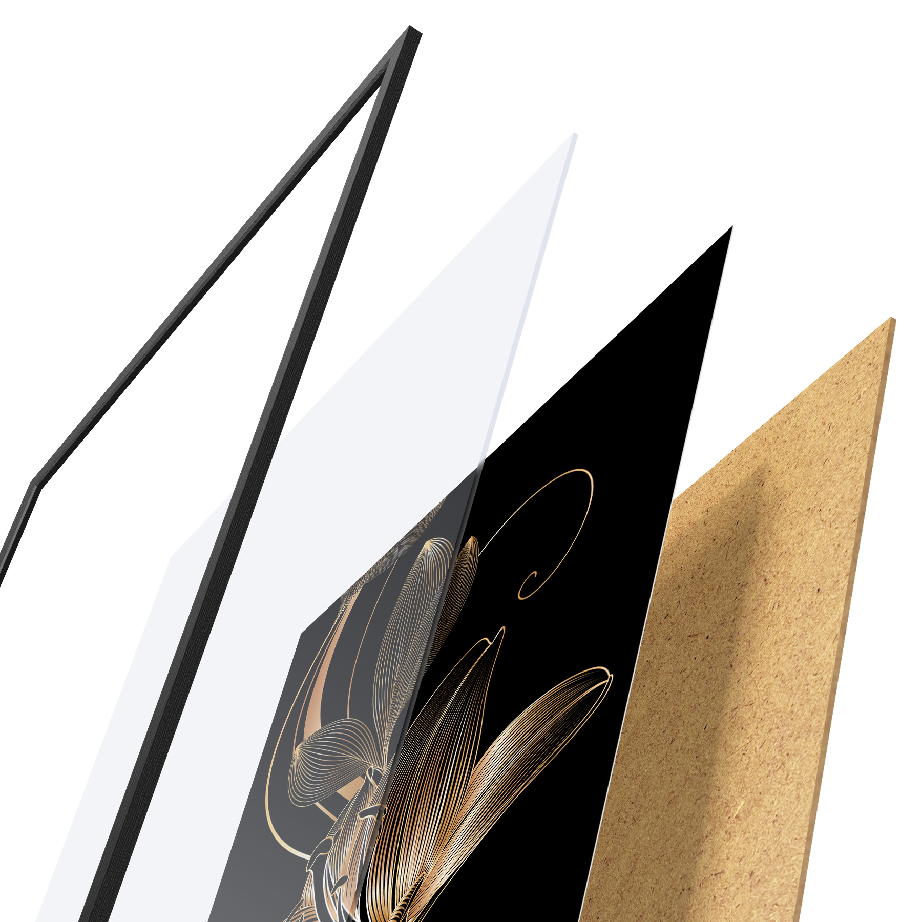 El póster consta de marco, plexiglás, imagen impresa y soporte de aglomerado. El póster puede colgarse inmediatamente en la pared gracias a los soportes de la parte posterior.