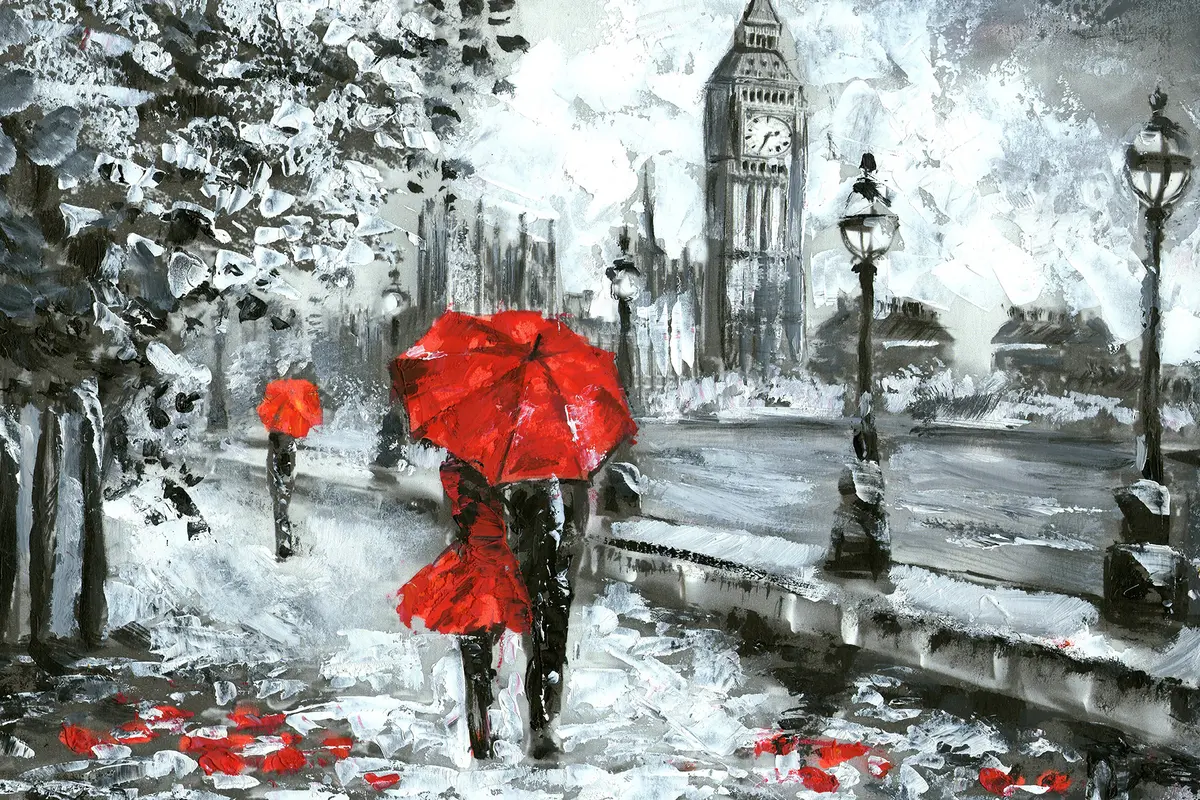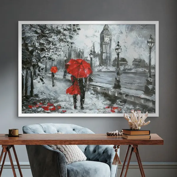 Poster Pareja bajo paraguas rojos en Londres f34614