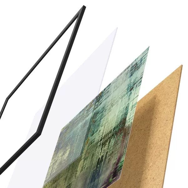 El póster consta de marco, plexiglás, imagen impresa y soporte de aglomerado. El póster puede colgarse inmediatamente en la pared gracias a los soportes de la parte posterior.