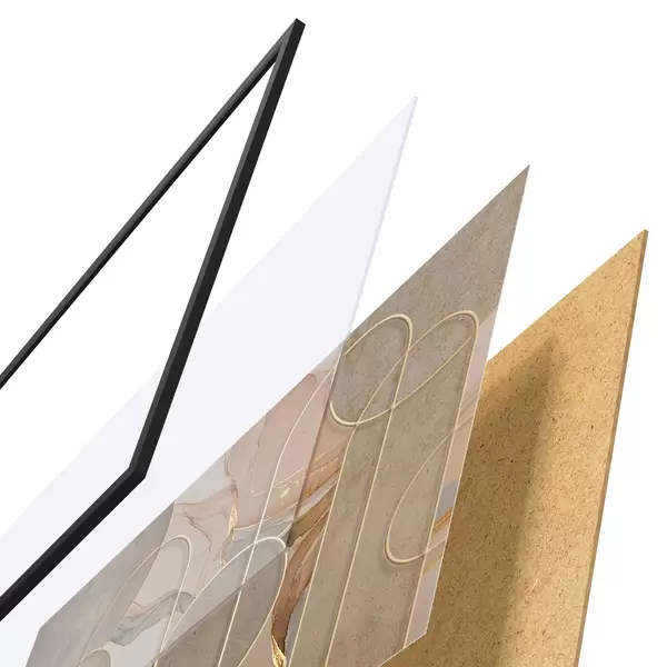 El póster consta de marco, plexiglás, imagen impresa y soporte de aglomerado. El póster puede colgarse inmediatamente en la pared gracias a los soportes de la parte posterior.