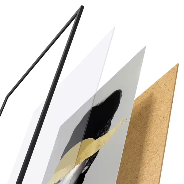 El póster consta de marco, plexiglás, imagen impresa y soporte de aglomerado. El póster puede colgarse inmediatamente en la pared gracias a los soportes de la parte posterior.