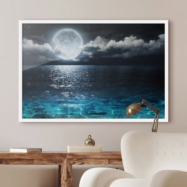 Poster Olas iluminadas por la luna que reflejan tranquilidad f35167