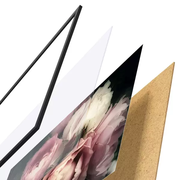 El póster consta de marco, plexiglás, imagen impresa y soporte de aglomerado. El póster puede colgarse inmediatamente en la pared gracias a los soportes de la parte posterior.