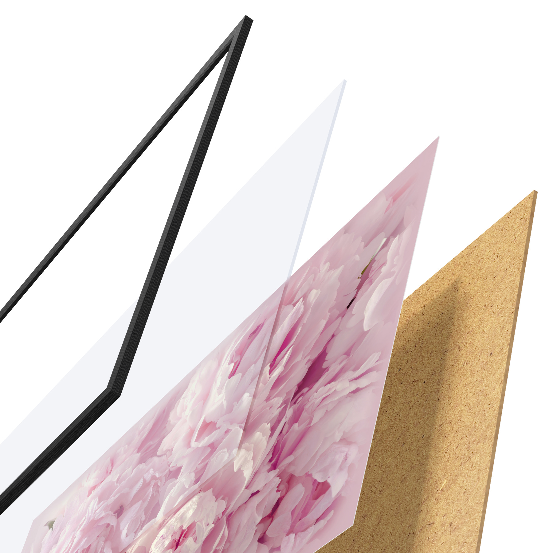 El póster consta de marco, plexiglás, imagen impresa y soporte de aglomerado. El póster puede colgarse inmediatamente en la pared gracias a los soportes de la parte posterior.