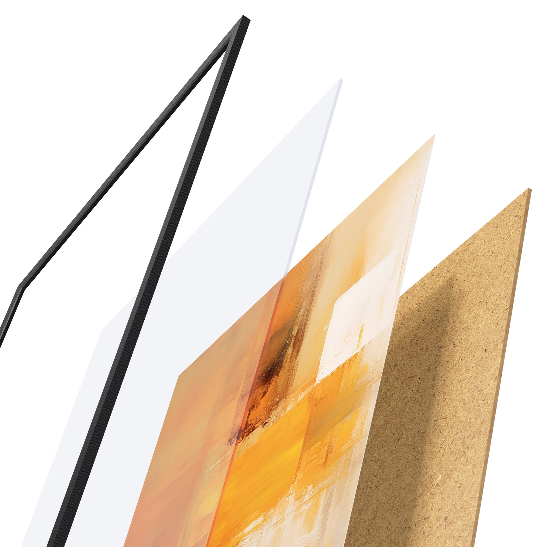 El póster consta de marco, plexiglás, imagen impresa y soporte de aglomerado. El póster puede colgarse inmediatamente en la pared gracias a los soportes de la parte posterior.