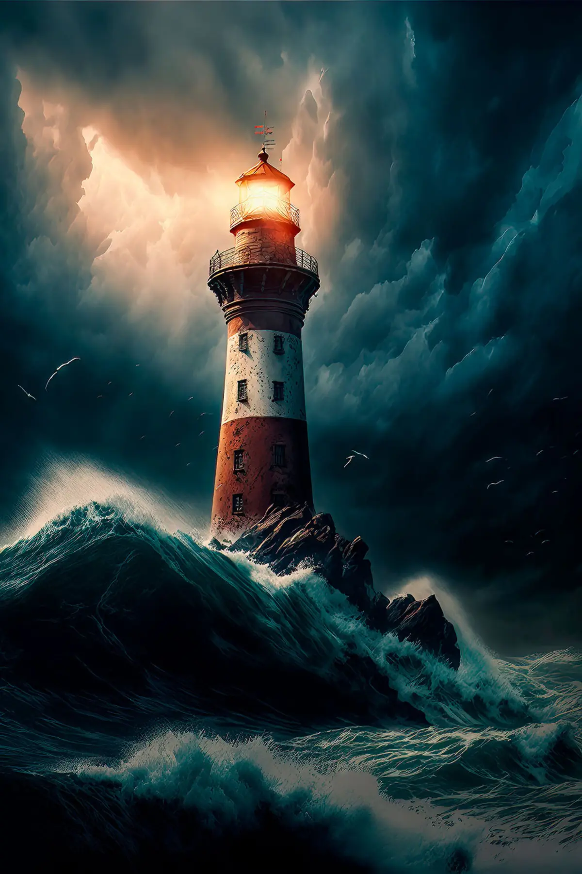 Poster Faro que guía en aguas turbulentas Nr f35349