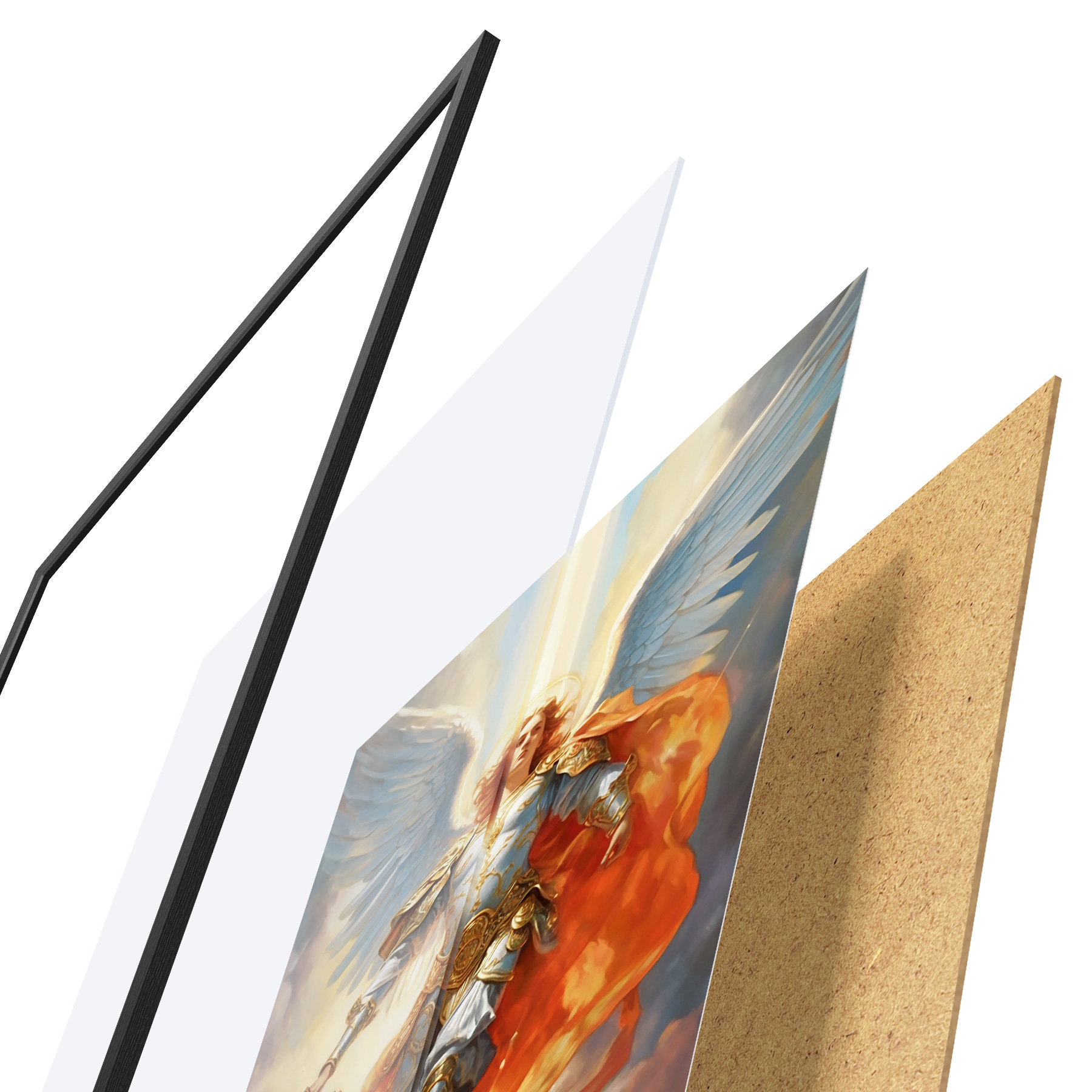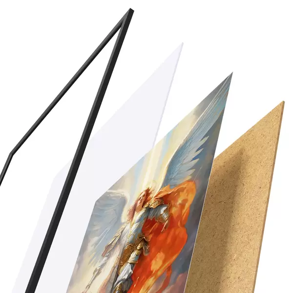 El póster consta de marco, plexiglás, imagen impresa y soporte de aglomerado. El póster puede colgarse inmediatamente en la pared gracias a los soportes de la parte posterior.