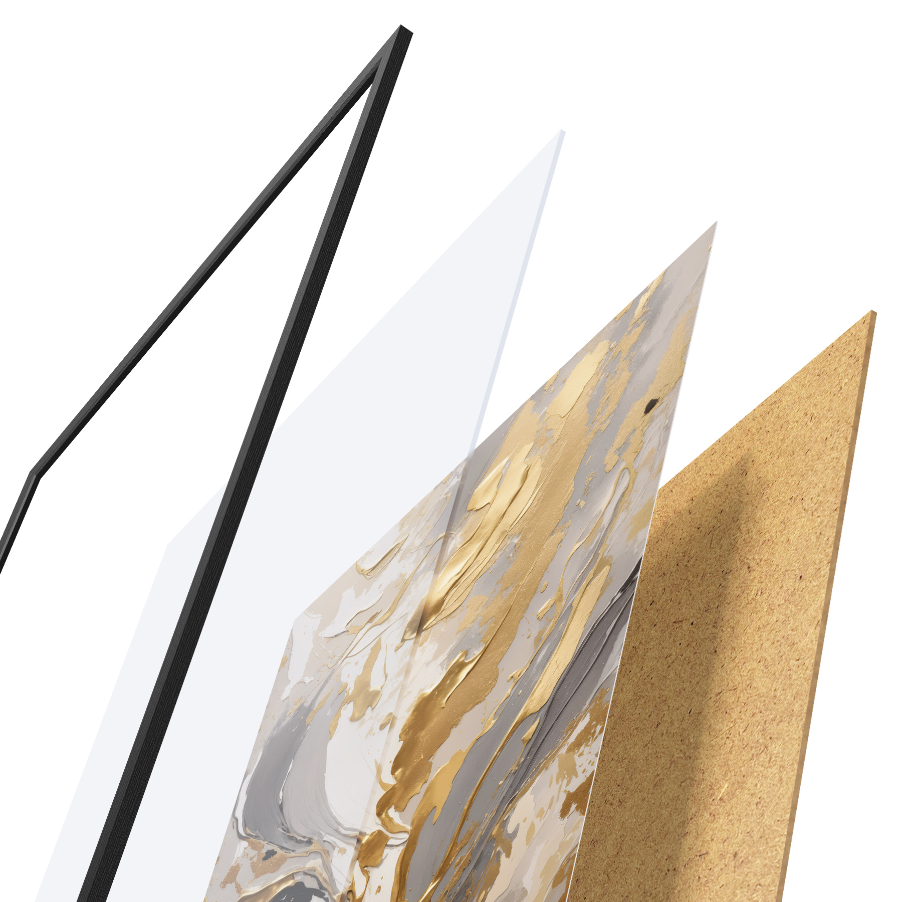 El póster consta de marco, plexiglás, imagen impresa y soporte de aglomerado. El póster puede colgarse inmediatamente en la pared gracias a los soportes de la parte posterior.