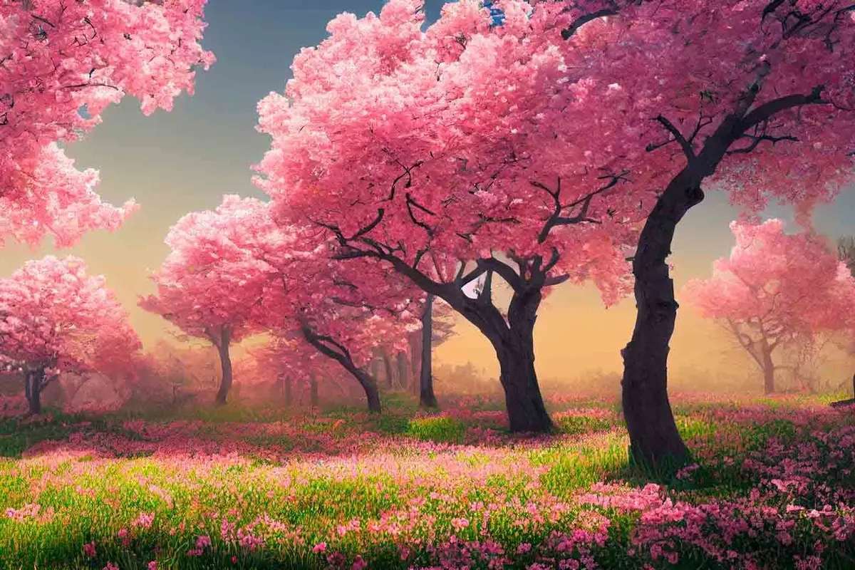 Poster Árboles en flor con vibrantes colores primaverales Nr f35703