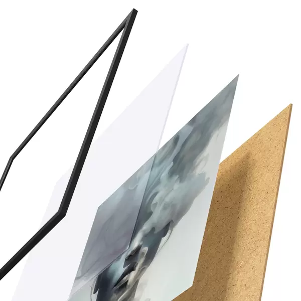El póster consta de marco, plexiglás, imagen impresa y soporte de aglomerado. El póster puede colgarse inmediatamente en la pared gracias a los soportes de la parte posterior.